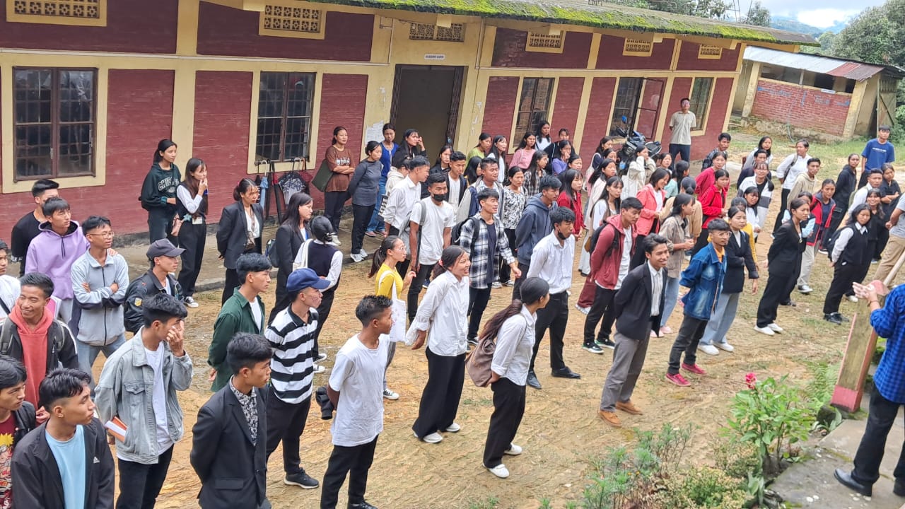 Assembly of the students and staff has been regularly organised since the beginning of the current semester. Today’s assembly was led by Shri Namsurei Thomas Kamei, Asst. Professor and HoD, Dept. of Economics & IQAC Coordinator, Tamenglong College. Smt. Maliangjinliu Panmei, Associate Professor and HoD, Dept. of History, Tamenglong College, deliver an encouragement speech to the students.