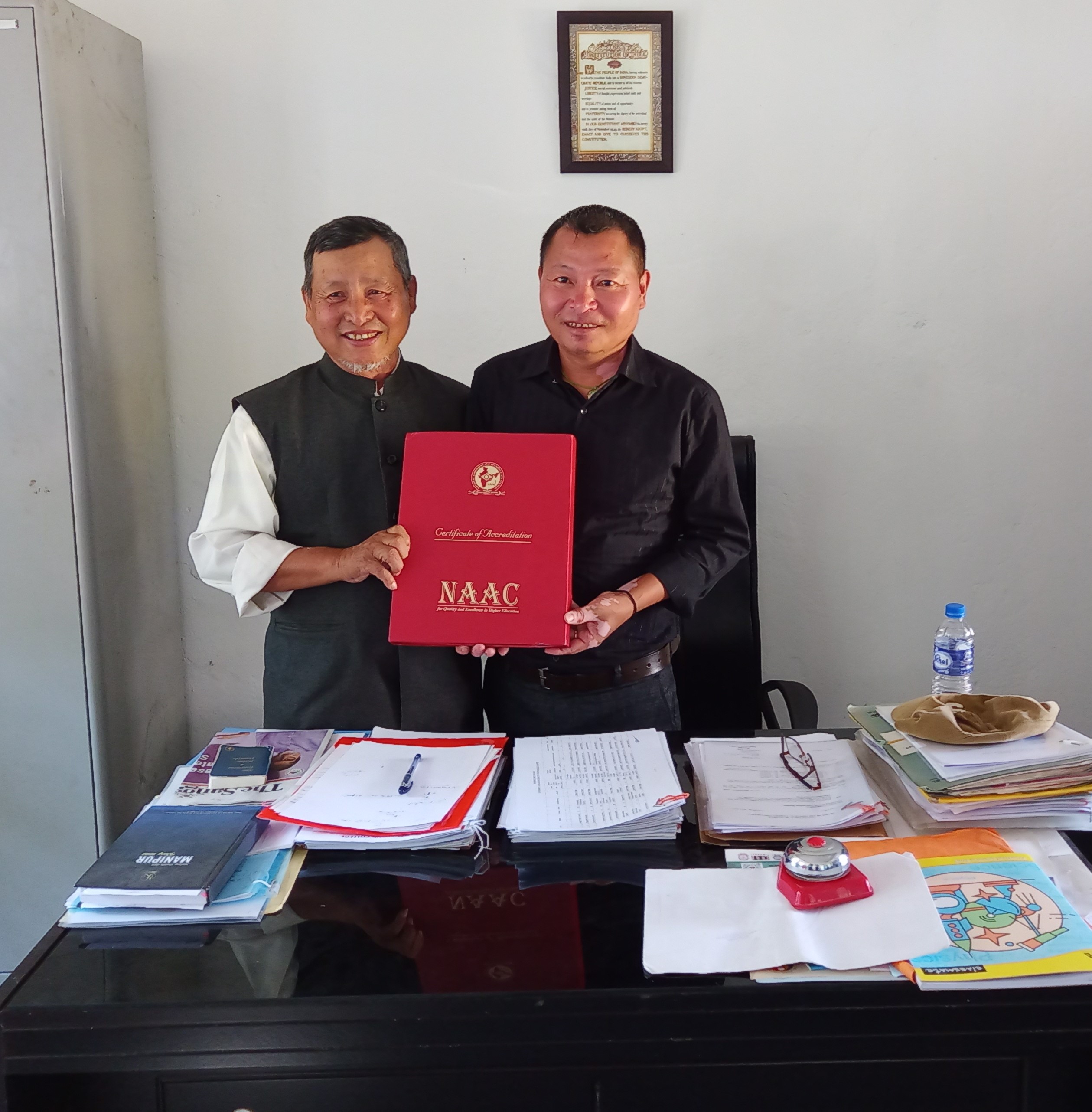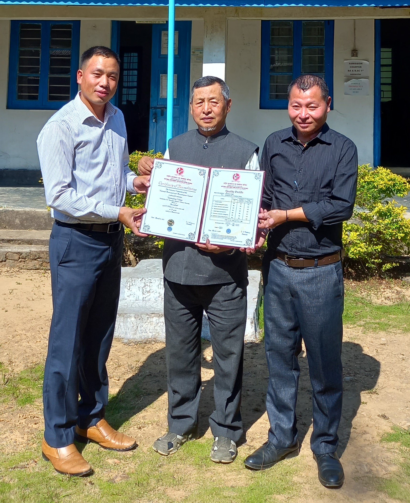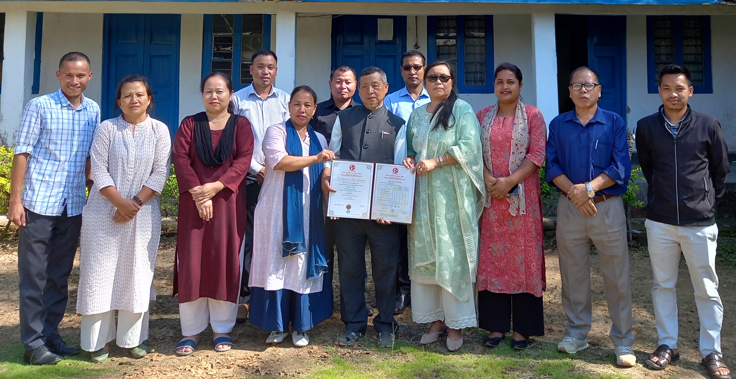 IQAC Team led by the Chairman and Principal Dr. N. Daimei and Coordinator Shri Namsurei Thomas Kamei proudly posing for the lens on 17 October 2023.