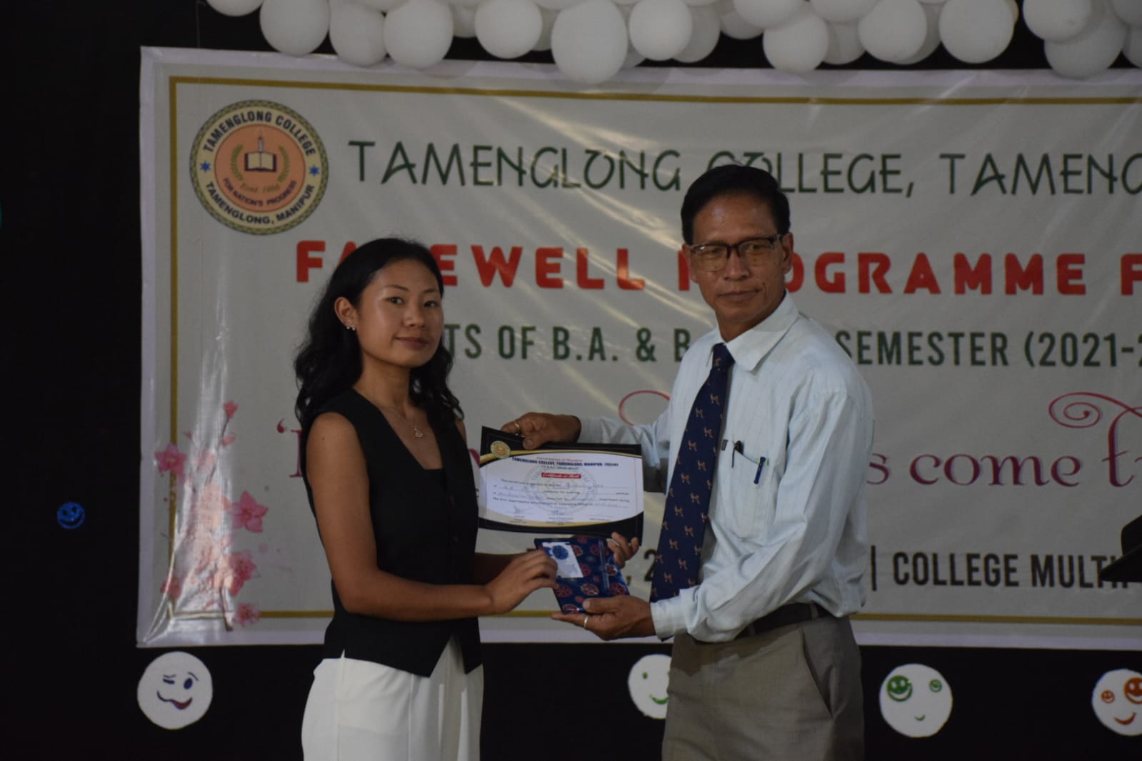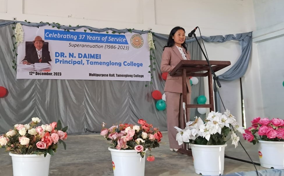 During the Farewell Programme for the final semester students on 24 May 2024, Ms. Machunlu Inka, BA English Honours (6th Semester), was acknowledged as the most prominent student for her outstanding contribution during her 3-year degree course in Tamenglong College by Tamenglong College Teachers’ Association. The declaration was made by Sir NG Tuakeulung, Asst. Professor & HoD, Dept. of English, who is also the General Secretary of the Association. She was also honoured with a cash prize of Rs. 4000 (four thousand only) as a token of appreciation.