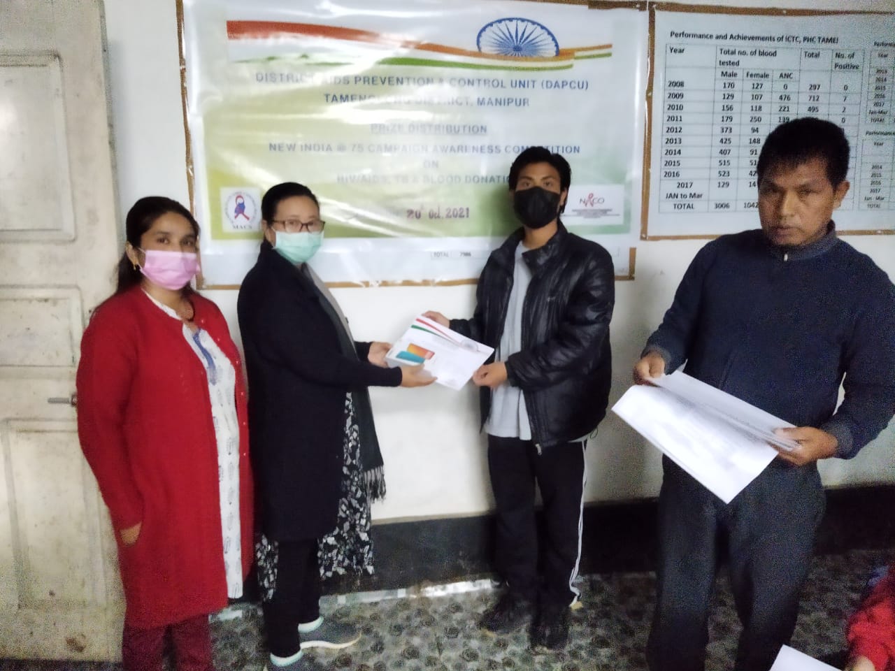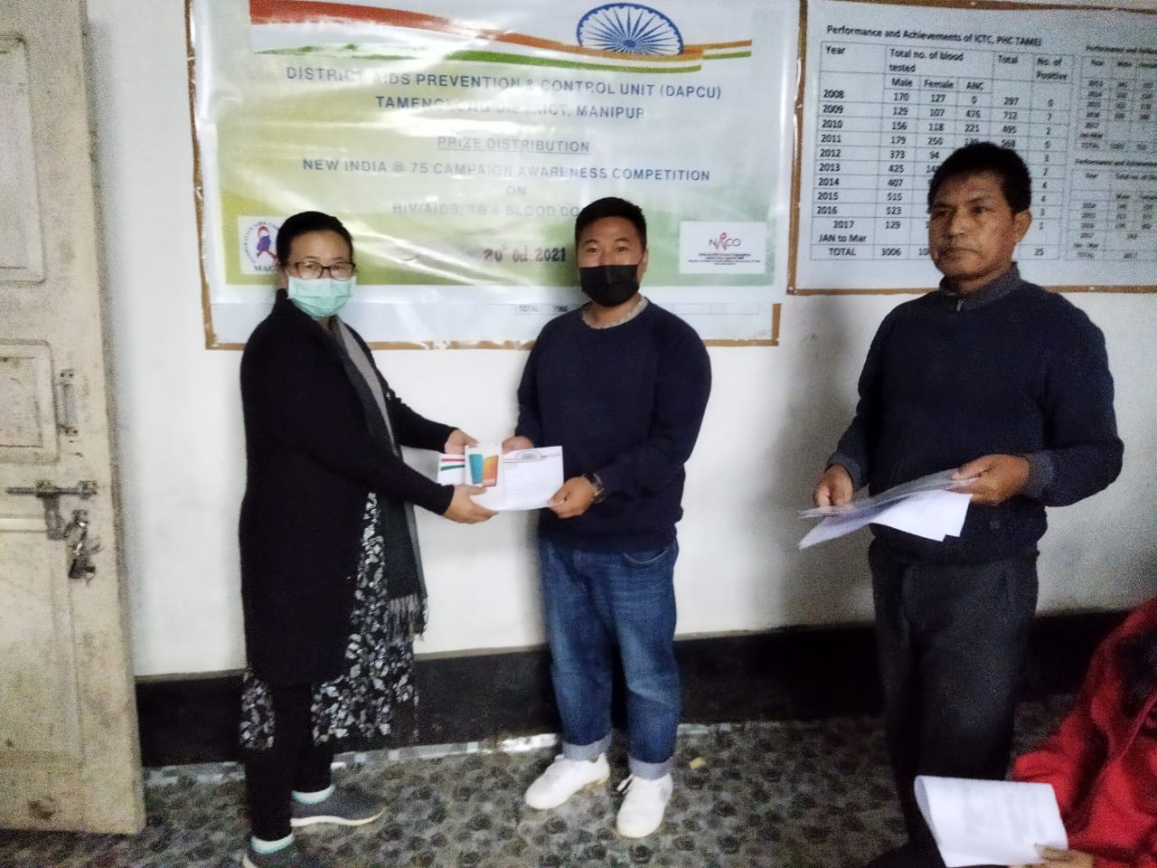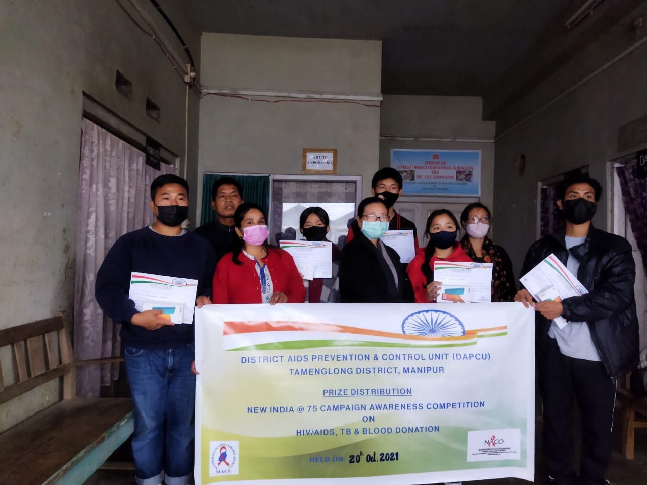 Students of Tamenglong College participated in the New India@75 Awareness Competition on HIV/AIDS, TB & Blood Donation in Tamenglong. The Prize Distribution for the winners of the Competition was held on 20 October 2021 at the office of the Chief Medical Officer. The Awareness Program (Competition) was organised by District AIDS Prevention & Control Unit (DAPCU), Tamenglong District.
