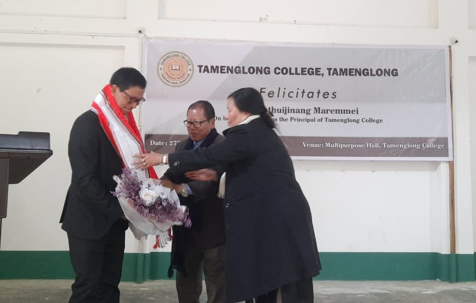 After Dr. N. Daimei who served as the Principal (in-charge) of Tamenglong College for 37 years vacated the office by the end of December 2023 on attaining superannuation, Dr. Kinthuijinang Maremmei, Assoc. Professor, Department of History, was appointed as the new Principal (in-charge) in January 2024. After his appointment, the students and staff of the College warmly welcomed and felicitated the new Principal on 27 January 2024.