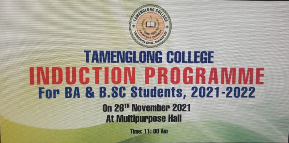 As the second wave of Covid-19 Pandemic subsides, and the admission process for the new academic session 2021-22 came to an end, an Induction Programme for BA/B.Sc 1st Semester was held at the Multi-Purpose Hall of Tamenglong College on 26 November 2021.