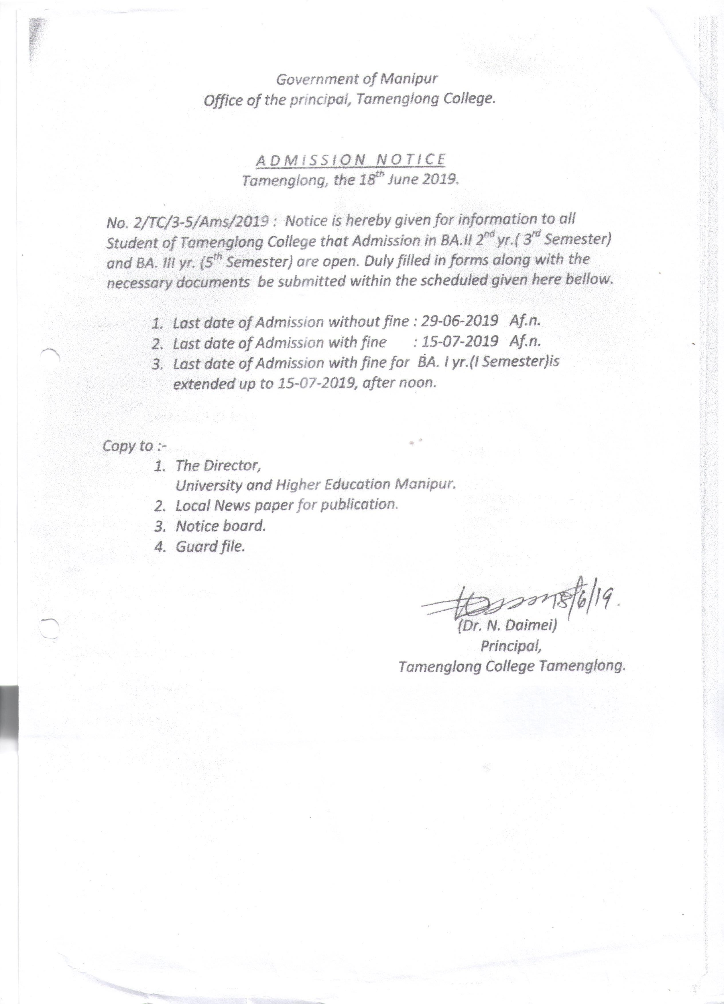 » Admission Notice 3rd & 5th Semester 2019